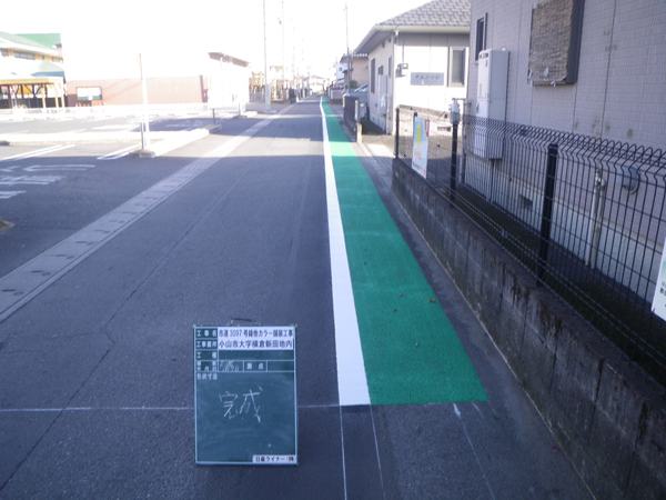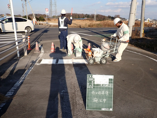 一般道路のセンターラインをはじめ横断歩道、矢印、文字などを施工、また、駐車場の区画線など。