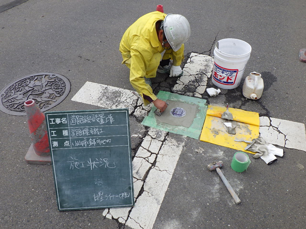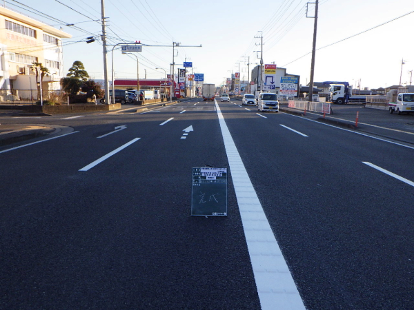 カーブや下り坂、交差点等におけるすべり止め設置により車のグリップ力を高め事故防止に役立てる。