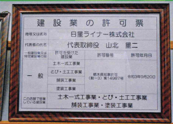 | 許可番号 | 栃木県知事許可 一般第14987号 |