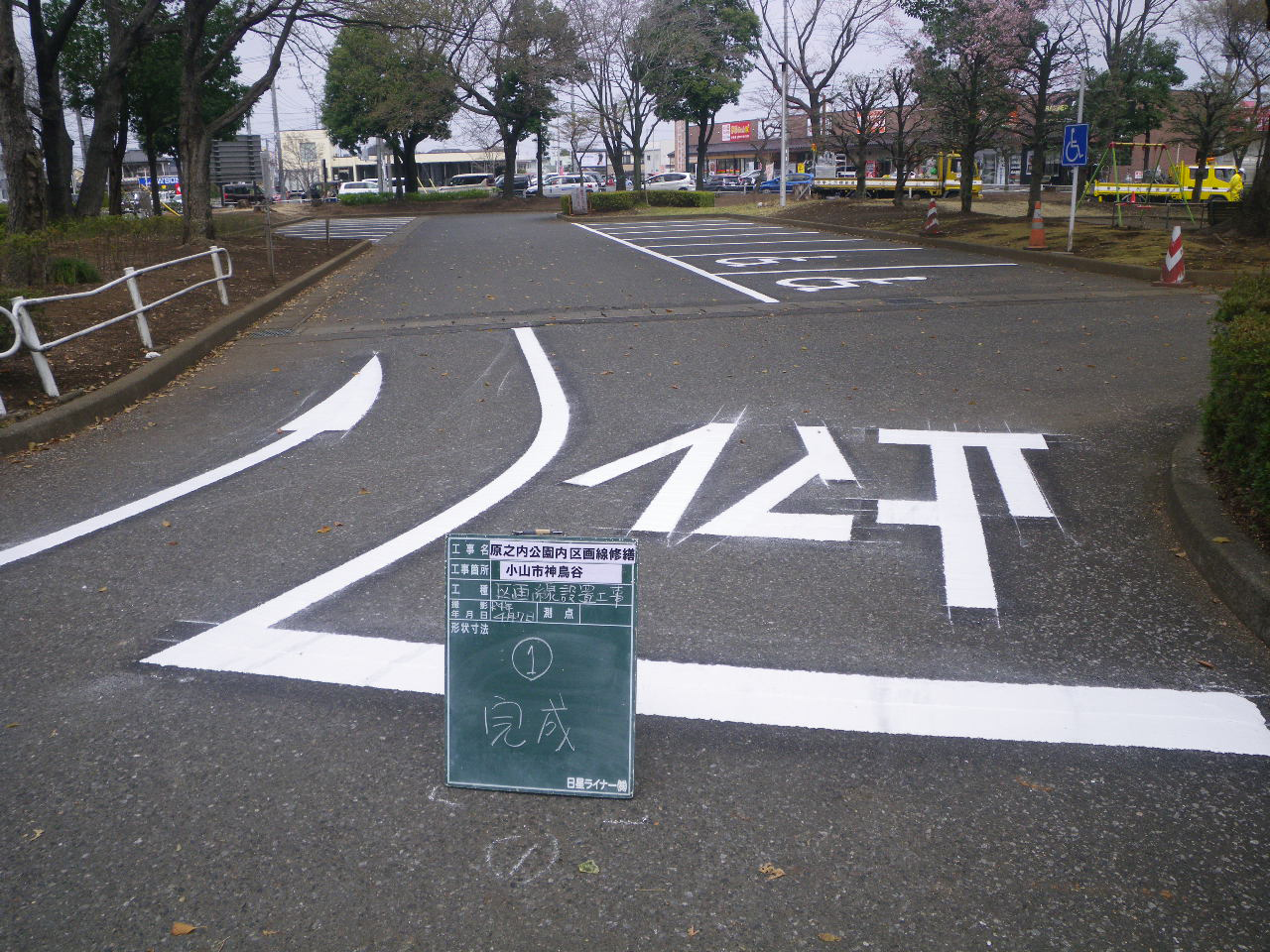 一般道路のセンターラインをはじめ横断歩道、矢印、文字などを施工、また、駐車場の区画線など。