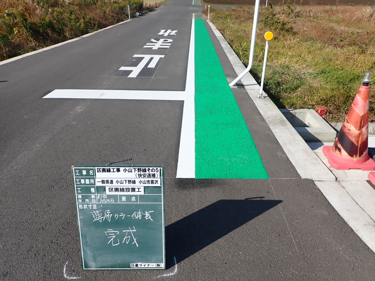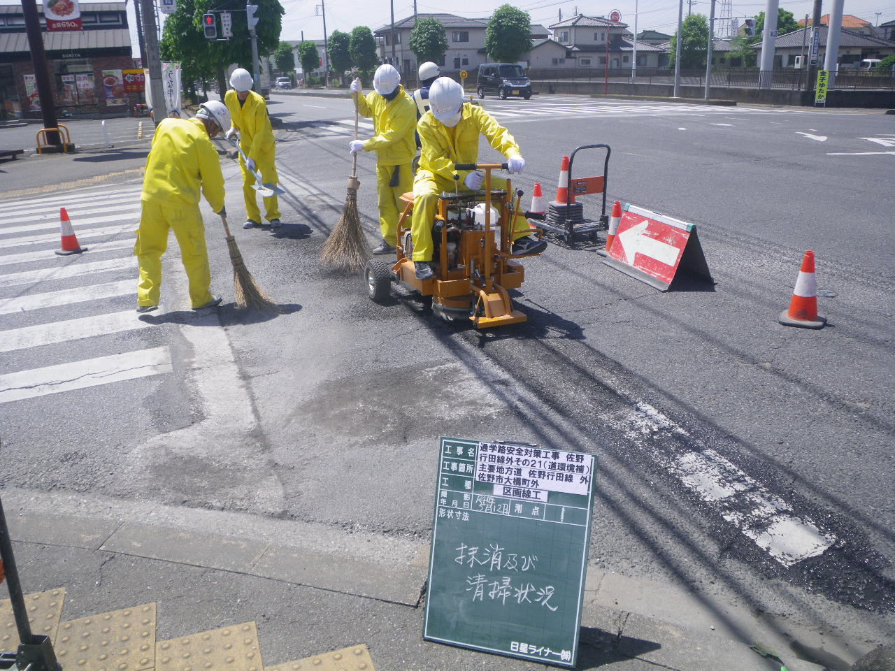 | 業務内容 | 標識 高視認性 防護柵 道路鋲・中心鋲・視覚障害者誘導表示 ウォータージェット(舗装を削らない方式) ミストライン(排水性対応ライン) 高精度ライン施工(バイブラライン) 舗装 すべり止め |